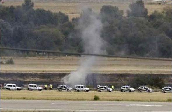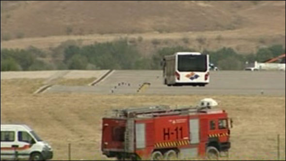 وقالت وسائل الاعلام الاسبانية ان احد محركات الطائرة اشتعلت فيه النيران، وتطايرات سحب الدخان من حطام الطائرة قرب نهاية مدرج الهبوط. وقد الغت سلطات المطار رحلات الاقلاع في اعقاب الحادث كما قلصت عدد الرحلات القادمة.
