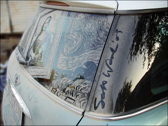 أغلبيتنا ان لم نكن جميعنا، رأينا سيارات قذرة جداً لم تغسل منذ وقت طويل، كما رأينا أحياناً الكلمات "أرجوك إغسلني" مخطوطة على هيكل السيارة أو زجاجها الذي تعلوه طبقة من الغبار.. هذه المخطوطة أو الجملة أضحكتنا ولكنها لم تضحك الرسام الإبداعي الأمريكي "سكوت وين"، فمنذ صغره ولأول مرّة رأى فيها سيارة يعلوها الغبار بدأ برسم صور لشخصيات يحبها من أفلام الكرتون على الزجاج وبواسطة بنصره.. أما اليوم فيقول سكوت أنه أوجد فن آخر وهو فن الرسم على السيارات بواسطة فرشاة جافة وبدون استعمال الدهان أبداً.. كل ما يفعله هو تنظيف طبقات من الغبار لتوضيح الصورة التي يود رسمها.. ونترككم مع الصور.