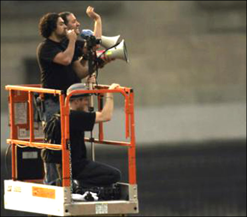 ووجه تونيك المتطوعين من خلال مكبر عملاق للصوت والتقط عددا من الصور لعارضيه المكسيكيين وهم يرفعون أذرعتهم في وقت واحد ثم وهم يرقدون على ظهورهم في الساحة. كما التقط لهم صورا في شارع جانبي وقد اصطفوا على شكل سهم.