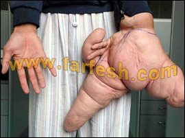 الشاب الذي يدعى ليو هووا (24 عاما) خضع اول من امس الى عملية جراحية اجريت بهدف إزالة نحو 4 كيلو غرامات من العظام والانسجة الزائدة من اصابع الابهام والسبابة والوسطى التي كانت قد تضخمت حتى اصبح الواحد منها اغلظ من ذراع ذلك الشاب.
