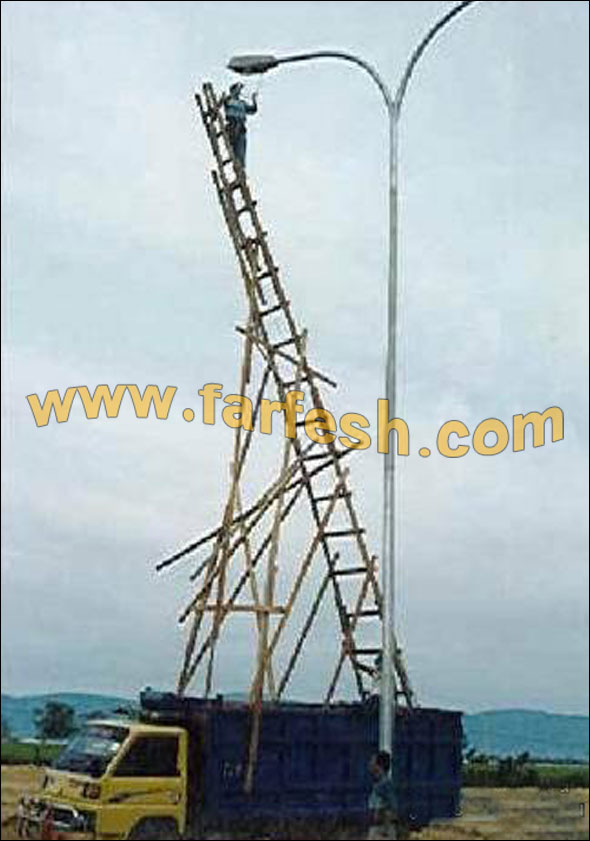 رغم توصل البشرية الى اعلى المستويات في طرق الحماية عند القيام بالأعمال المختلفة، فالصور التي امامكم لا تعكس هذا الواقع. فهؤلاء العمال يستعملون أساليب بدائية جدا كوسائل حماية والتي ممكن ان تجعل العمل اخطر بدلا من تقليل خطورته. وها نحن في فرفش نضع الصور امامكم لننبهكم ونحذركم من الخطأل الذي قد ينجم عن هذه الاعمال...