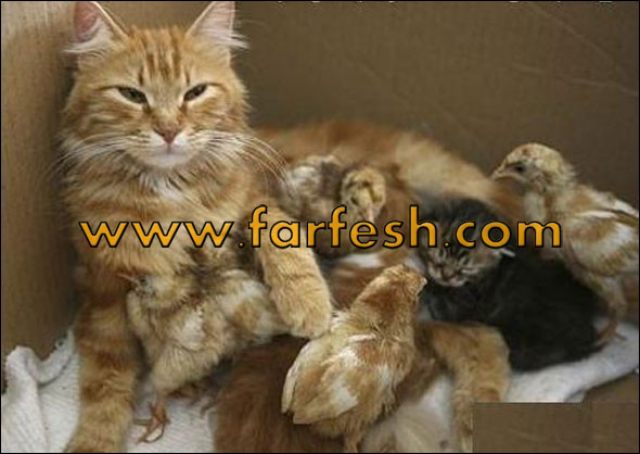 اغرب ام: هي قطه موجوده في النمسا قامت بلأعتناء بكتاكيت فقدت امها...