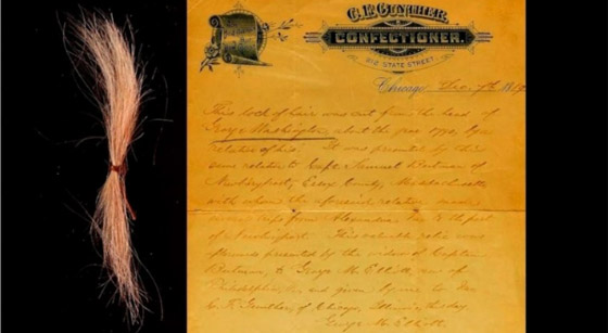 أول رئيس للولايات المتحدة كانت لديه خصلة من شعره الأبيض محفوظة منذ قرون، وهي الآن معروضة للبيع في مزاد بمبلغ 45 ألف دولار. كشف موقع أن خصلة شعر جورج واشنطن ملفوفة بشكل بيضاوي، وموضوعة في علبة زجاجية صغيرة تحيط بها حب ات اللؤلؤ من كل الجهات، ونقشت على الجزء الخلفي من العلبة الأحرف الأولى من اسمه "GW". ويترافق مع الخصلة، مجموعة من المراسلات المكتوبة بخط اليد، والمؤرخة بدءاً بتاريخ 15 أغسطس (آب) 1873، بين آل ديربي الأمريكيين النبلاء، وجامع لآثار كبار الشخصيات والمشاهير حول العالم. وتذكر المراسلات أن جورح واشنطن لم يكن يضع على رأسه شعراً مستعاراً مطلقاً، على عكس العديد من معاصريه، بل كان يقوم بتسريحه بنفسه، وفق آلية معينة – لم يتم تحديدها – تجعل منه يبدو وكأنها مستعاراً.