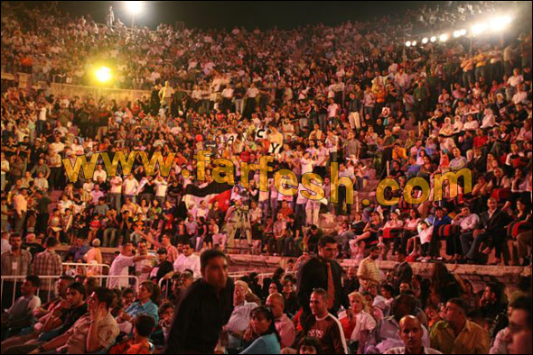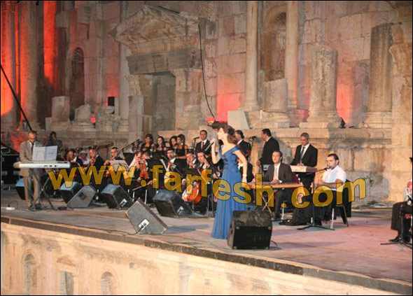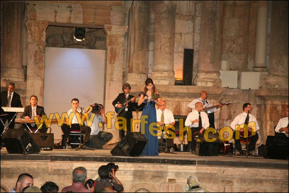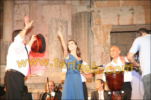 بدت " مغرمة " في " معجبة" وتحايلت بدلعها المحبب على عاشقها طالبة ابعاد عيونه عنها أثناء الغناء في أغنية وجهتها للجمهور ثم استدركت سريعا وقد رافقها في هذه الاغنية ضاربو الايقاع بالرقص حولها في طقس لبناني معروف على المسارح العتيقة، قبل ان يتحول المدرج إلى حالة مفرطة من الرقص والصخب مع أغنية " شخبط شخابيط" التي طلبها الاطفال بإلحاح ورقص عليها الكبار.