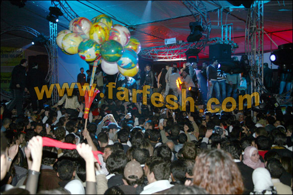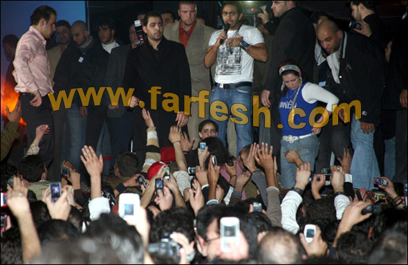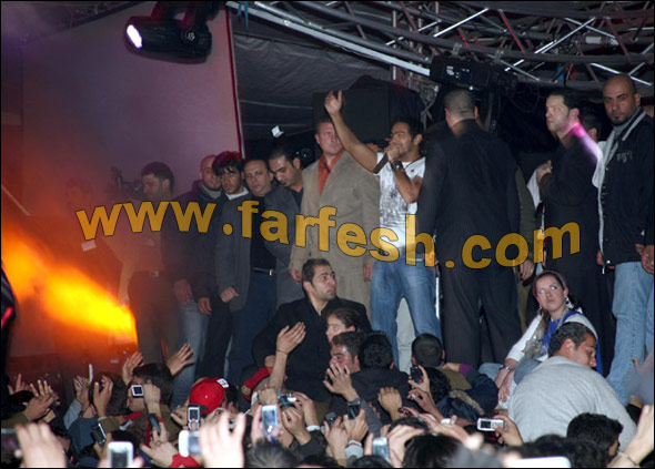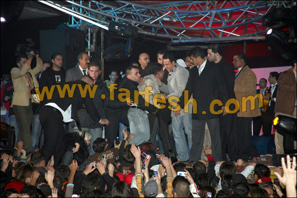 وبسبب كثرة الازدحام في حفلة حلب اختار الامن خروج المطرب من المطبخ ..وقد لوحظ وجود الهلال الاحمر الذي تولى االاسعافات الاولية.