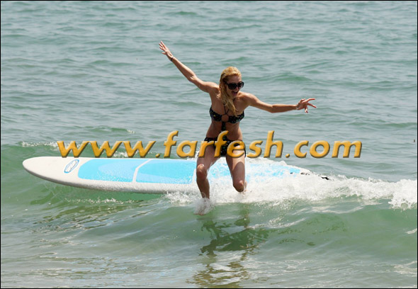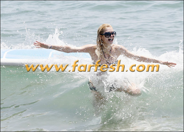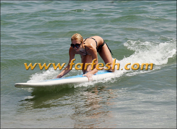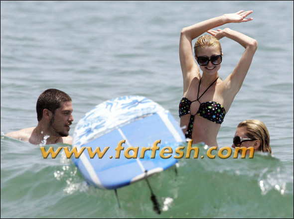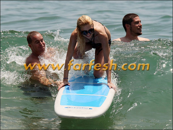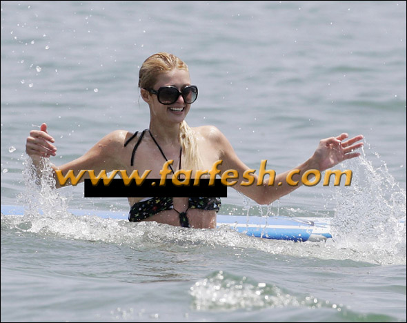 لم تنتظر الأمريكية المدللة وريثة سلسلة فنادق هيلتون المعروفة "باريس هيلتون"، طويلا بعد خروجها من السجن لتتصدر صورها صفحات المجلات والجرائد، إذ شوهدت مؤخراً تمارس هوايتها في ركوب الأمواج على شاطئ ماليبو مع بطل ركوب الأمواج الاسترالي كوبي اببيرتون وهو برفقة صديقته العارضة العالمية تاهينا توزي. وفجأه.. بينما كانت باريس تباطح احدى الموجات، إنزلق عنها البيكيني ليكشف ثديها امام مئات المصورين الذين لم يصدقوأ أعينهم مع ان الأمر أصبح شيء طبيعي لباريس..